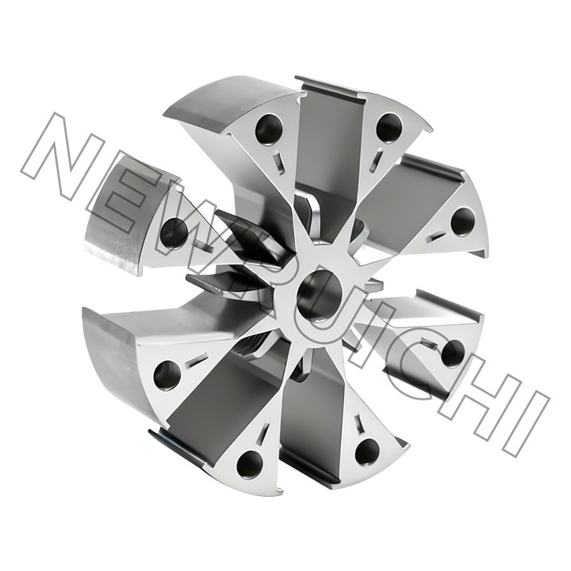 Stator motor stepper dan laminasi rotor membentuk unit magnet penting yang membolehkan kawalan gerakan langkah demi langkah. Menggunakan keluli silikon kebolehtelapan tinggi dan perkakas ketepatan, setiap laminasi dihasilkan dengan dimensi yang konsisten dan ketepatan geometri yang stabil.